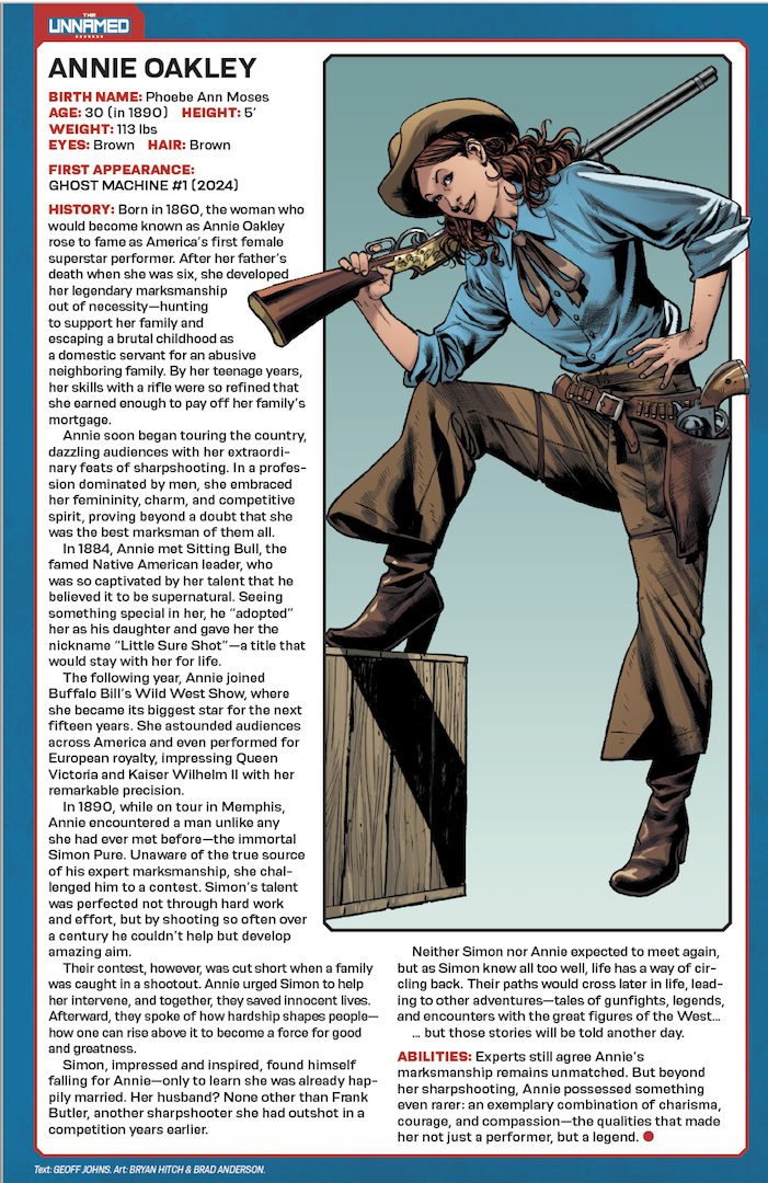 Written and illustrated by JASON FABOK, GARY FRANK, BRYAN HITCH, GEOFF JOHNS, LAMONT MAGEE, FRANCIS MANAPUL, BRAD MELTZER, PETER J. TOMASI, MAYTAL ZCHUT, and more! A GROUNDBREAKING NEW ERA FOR COMICS, CHARACTERS AND CREATORS LAUNCHES NOW! An all-new powerhouse, creative collective collides into comics with GHOST MACHINE’s 64-page special, introducing its all-new shared universe of strange, fun, exciting and action-packed characters: GEIGER! REDCOAT! ROOK! THE ROCKETFELLERS! AND MANY, MANY MORE! What ties Geiger, Redcoat, Widow X, and the other mysterious, historical heroes of The Unnamed together? Why is Rook the key to saving the war-torn world of Exodus? How will everyone’s soon-to-be-favorite family of the future adapt to a new life in the present? THE STORIES ALL START NOW! CREATORS YOU KNOW. CHARACTERS YOU’LL LOVE. WELCOME TO GHOST MACHINE.